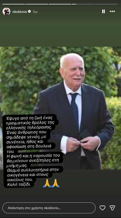 Λίγη ώρα μετά και η είδηση του θανάτου του προκάλεσε σοκ στον κόσμο της τηλεόρασης.