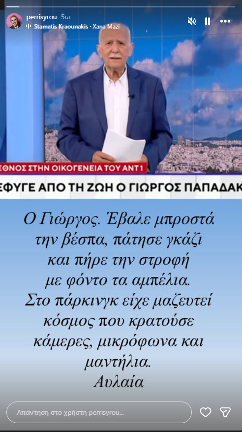 Δες παρακάτω τα μηνύματα των δημοσιογράφων και των καλλιτεχνών για τον θάνατο του Γιώργου Παπαδάκη: