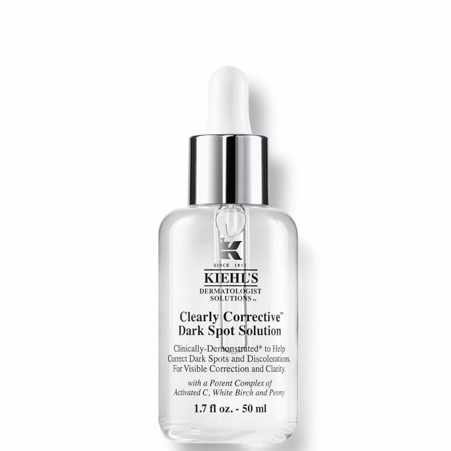 Kiehl’s Clearly Corrective Dark Spot Solution: Ο συνδυασμός ενεργής βιταμίνης C με τα εκχυλίσματα από λευκή σημύδα και παιώνια, όχι μόνο καταπολεμούν τις καφέ κηλίδες αλλά εμποδίζουν τη δημιουργία νέων, με συστηματική χρήση.
