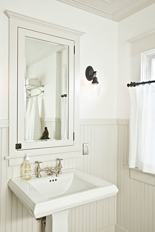 Στο λευκό μπάνιο επιλέχθηκε να είναι μαύρη η μπανιέρα.