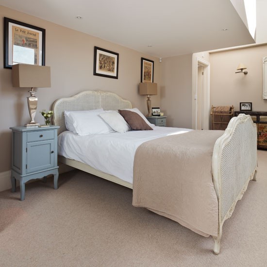 Το χρώμα επιλέχθηκε μόνο για το δωμάτιο των ξένων όπου το χρωματιστό κάλυμα και τα μαξιλάρια δίνουν άλλο ύφος στο χώρο.