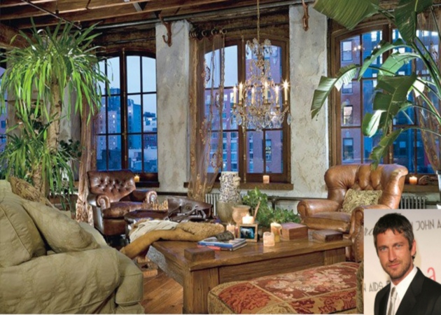 Στην εποχή των ιπποτών παραπέμπει το σαλόνι του Gerald Butler με δερμάτινες πολυθρόνες, σκούρο ξύλο στην οροφή και στα παράθυρα και πολυέλαιους-κηροπήγια.