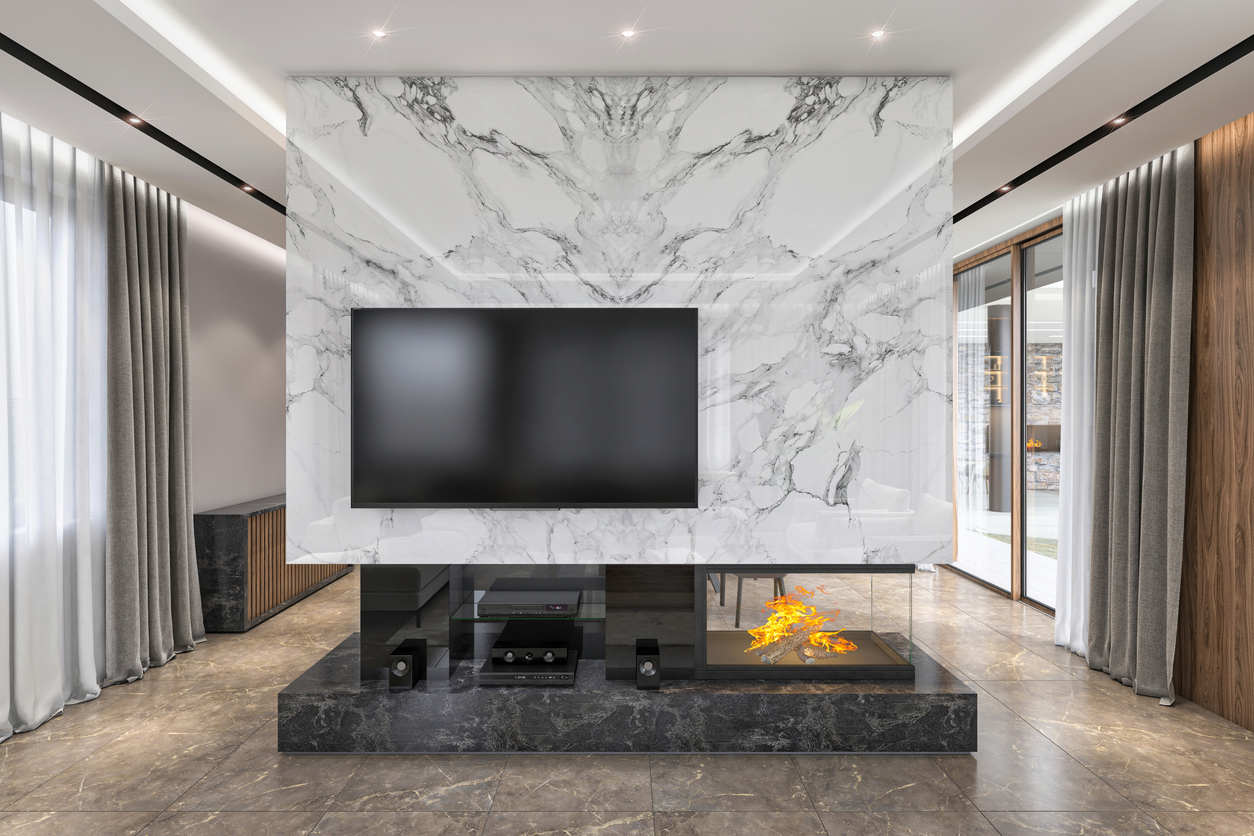 Αν θεωρείς ότι τα πλακάκια ανήκουν μόνο στο πάτωμα, ήρθε η ώρα να το ξανασκεφτείς. Μπορείς να ντύσεις με πλακάκια μόνο μία επιφάνεια, όπως τον τοίχο πίσω από τον καναπέ, δημιουργώντας εφέ «feature wall». Αν έχεις τζάκι, είναι το ιδανικό σημείο για να πειραματιστείς με πιο έντονα σχέδια, αφού το υλικό αντέχει τη θερμότητα και καθαρίζεται εύκολα. Άλλες ενδιαφέρουσες επιλογές είναι ο τοίχος της τηλεόρασης ή μια κολόνα που θέλεις να αναδείξεις αντί να την κρύψεις. Αν πάλι θέλεις να πας ένα βήμα παραπέρα, μπορείς να επενδύσεις ολόκληρο το σαλόνι με πλακάκι ίδιου τύπου στο πάτωμα και στους τοίχους για ένα μινιμαλιστικό και άκρως design αποτέλεσμα.