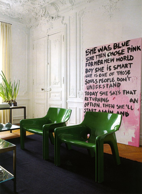 5. Τα χρώματα παίζουν το ρόλο του “ειρηνοποιού” στη πάλη ανάμεσα στα διαφορετικά και ενδεχομένως συγκρουόμενα στιλ που έχουμε διαλέξει. Γι’ αυτό και συνήθως προσπαθούμε να πετύχουμε μονοχρωματικά αποτελέσματα, διαλέγοντας ένα ουδέτερο ανοιχτό χρώμα για το κέλυφος, ένα μεσαίο ή σκούρο ουδέτερο χρώμα για τα έπιπλα και κάποιο έντονο ψυχρό ή θερμό για υφάσματα και αντικείμενα. Επίσης για πολύ ξεχωριστά και ιδιαίτερα αποτελέσματα μπορούμε να διαλέξουμε ένα μόνο χρώμα για τα πάντα. Έτσι θα ενοποιηθούν όλα τα ετερόκλητα στοιχεία του χώρου και θα πετύχουμε την ζητούμενη αρμονία. Με μερικά διαφορετικού χρώματος αντικείμενα θα πετύχουμε και την επιθυμητή έμφαση δίνοντας το απαραίτητο βάθος που χρειάζεται.
