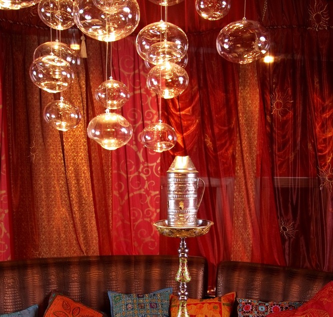 Τα ethnic μοτίβα στις κουρτίνες προσφέρουν εξωτικό στιλ στον χώρο, κάτι που μπορούμε να το πετύχουμε και με ασυνήθιστους χρωματικούς συνδυασμούς. Για παράδειγμα το βιολετί συνδυασμένο με μπλε ή κόκκινο μπορεί να δώσει ένα ξεχωριστό ύφος στην κρεβατοκάμαρα.