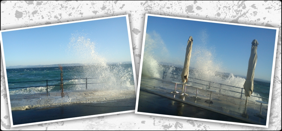 Λίγο πριν φύγουμε τα κύματα αγρίεψαν και όλη η παραλιακή της μικρής πόλης λούστηκε στο θαλασσινό νερό. Κανείς δεν ήθελε να φύγει από τη Λίμνη εκείνο το Σαββατοκύριακο. Ούτε η ίδια η θάλασσα. Το θέαμα πάντως ήταν εντυπωσιακό…
