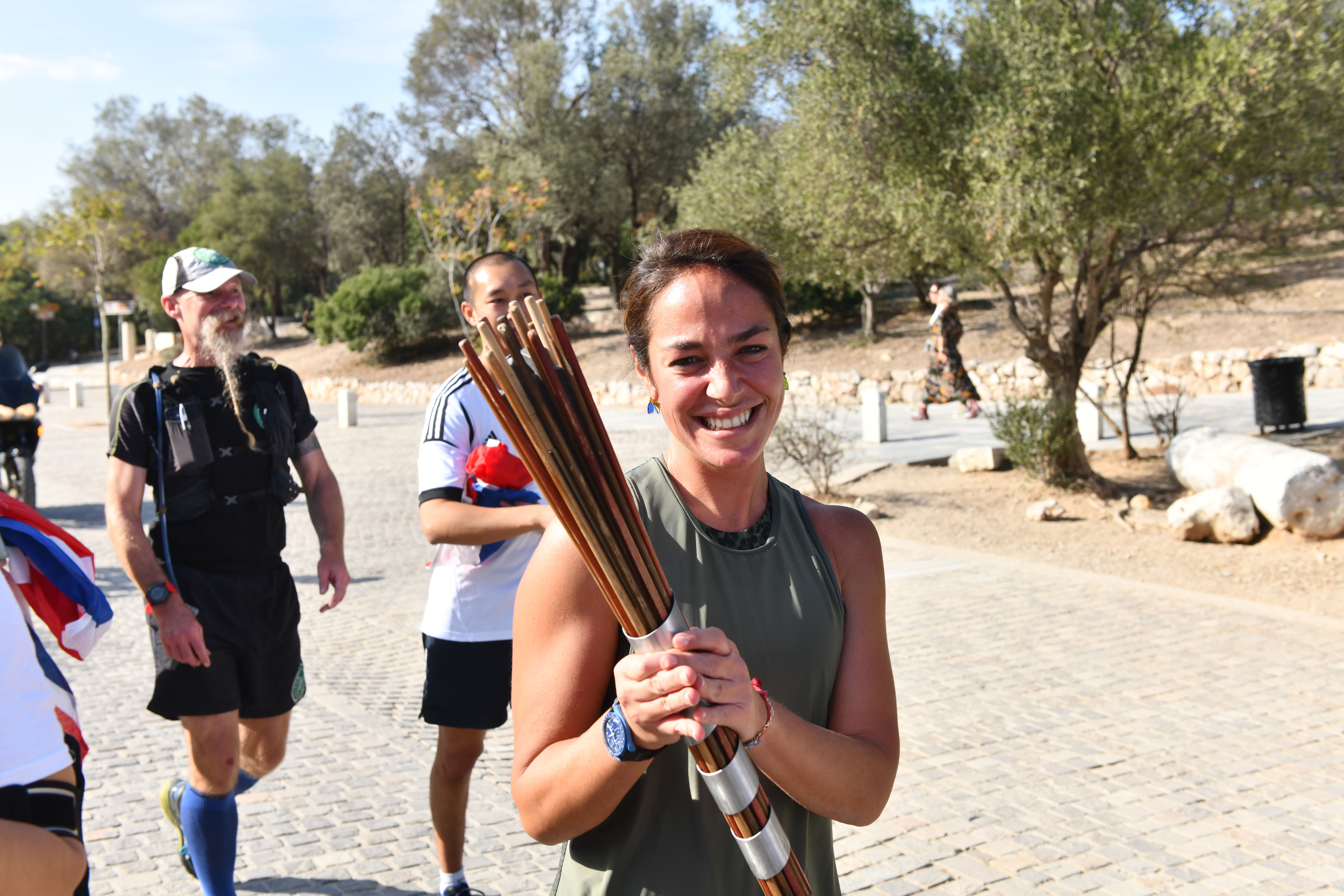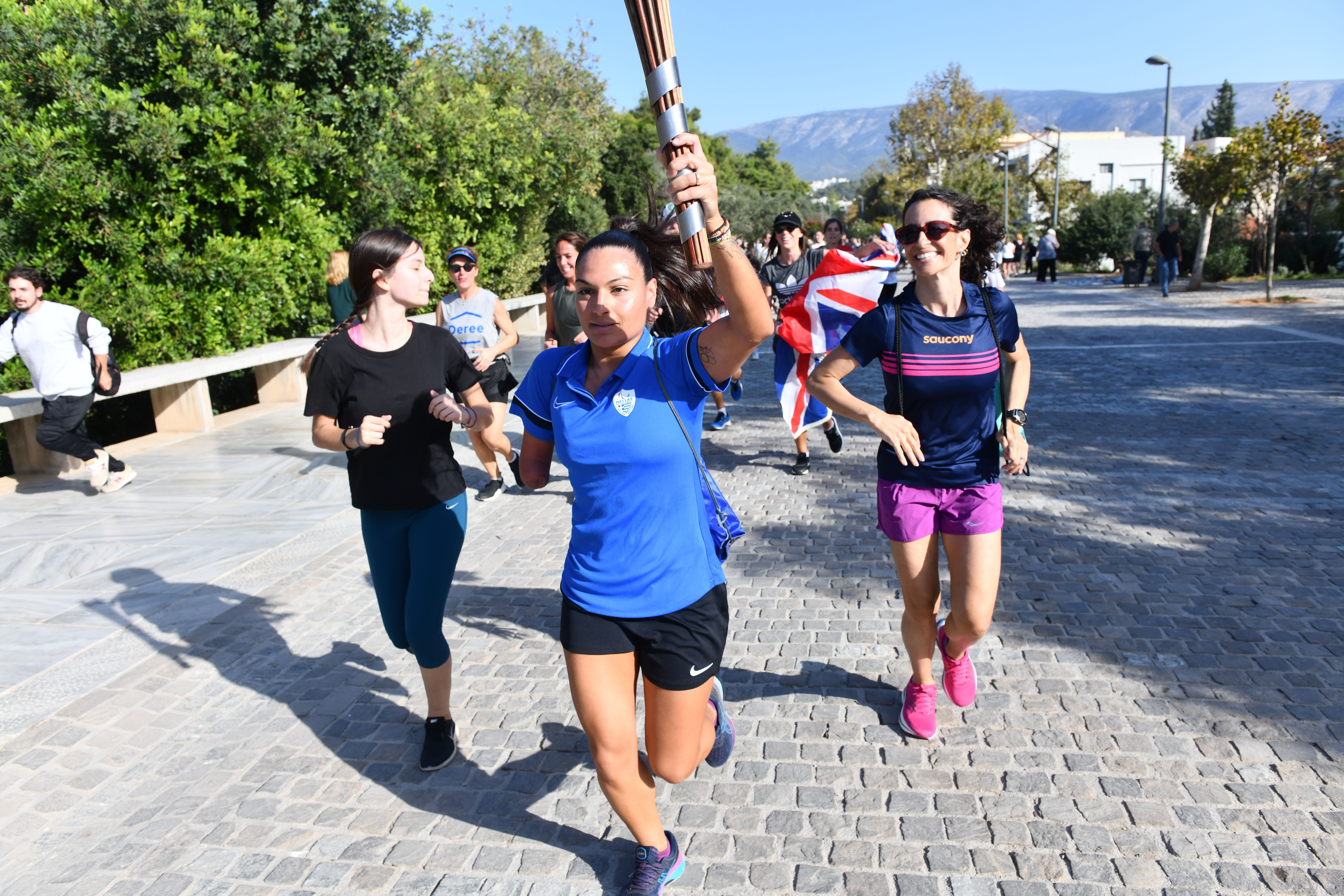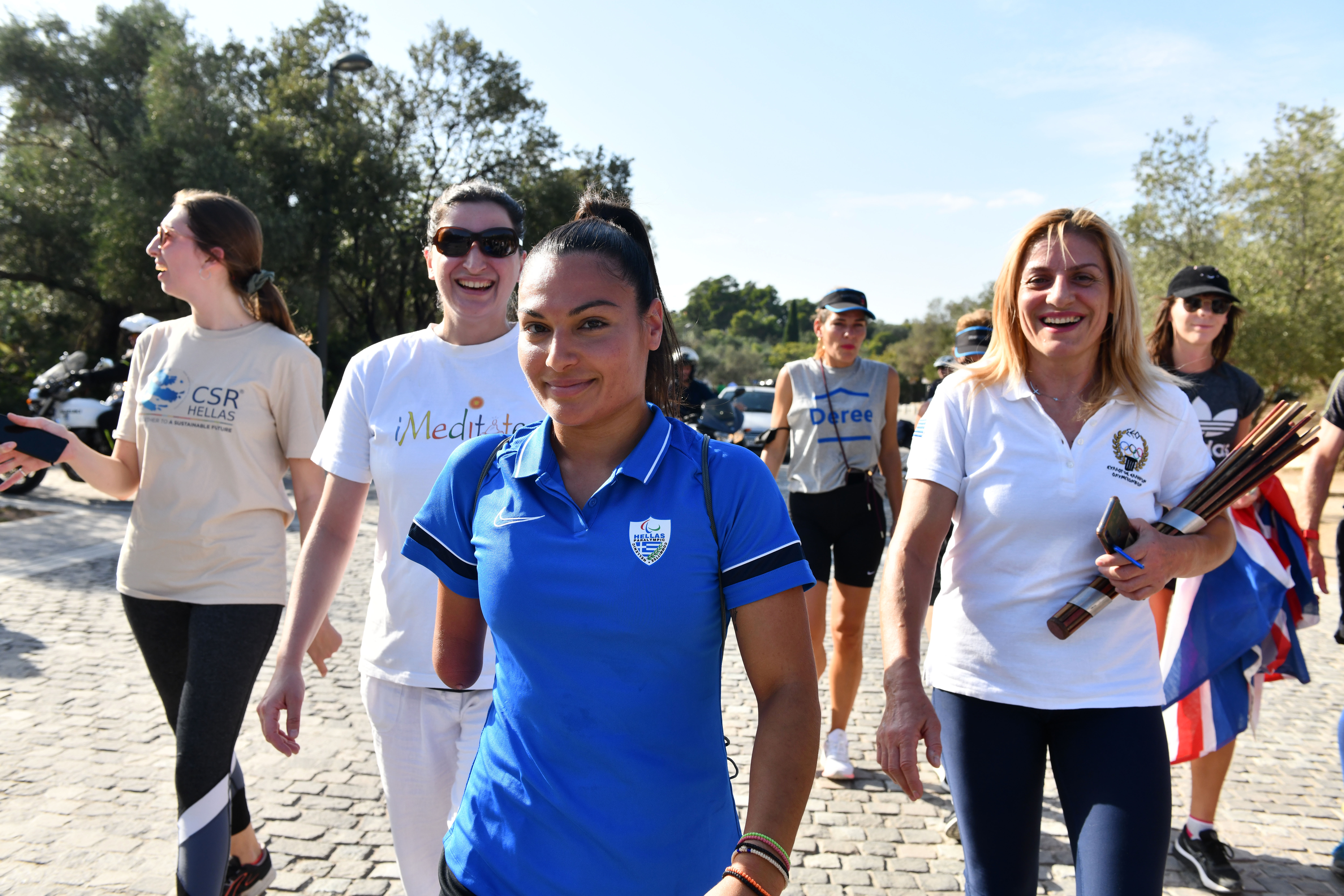 Λίγες ώρες αργότερα, στις 15.00 μ.μ στο Παναθηναϊκό Στάδιο, τους δρομείς υποδέχθηκαν στελέχη και αθλητές της Ελληνικής Ολυμπιακής Επιτροπής και Ελληνικής Παραολυμπιακής Επιτροπής, οι οποίοι μετέφεραν τη σκυτάλη στην Ακρόπολη. Ανάμεσά τους ο ηθοποιός και υπεραθλητής Άγης Εμμανουήλ, η παραολυμπιονίκης Ευθυμία Γκούλη και η πολιτικός Δόμνα Μιχαηλίδου.