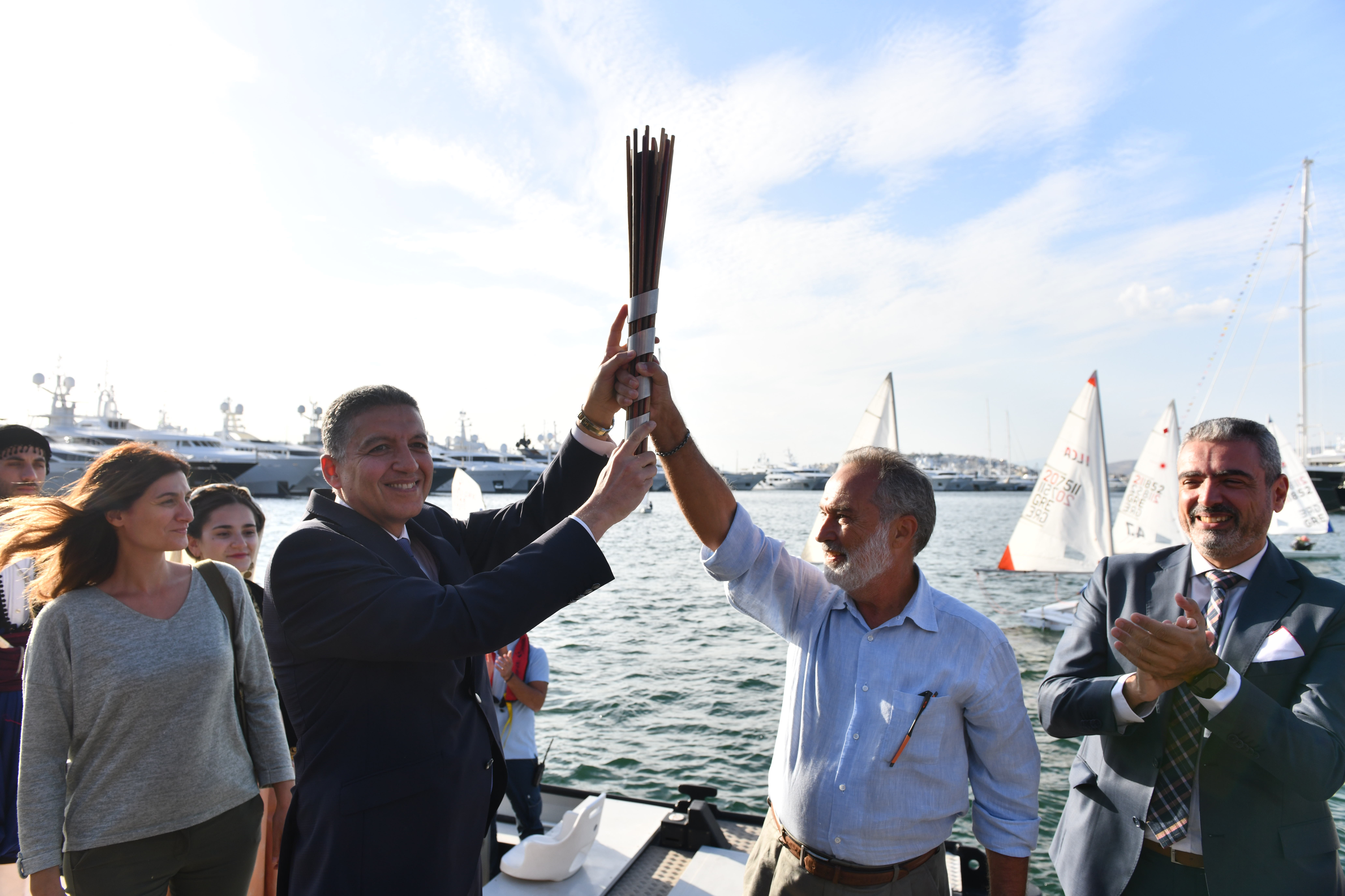 Η σκυτάλη κατέληξε στην Μαρίνα Φλοίσβου, στις 16.00, όπου πολιτική ηγεσία, πρέσβεις, ιστιοπλόοι Ολυμπιονίκες, και πλήθος κοινού την παρέδωσαν στο ιστιοπλοϊκό σκάφος ΑΚΡΟΝ ΑΩΤΟΝ προκειμένου να μεταφερθεί στην Κύπρο, συνοδεία του διευθυντή του FEE, κου Daniel Schaffer.
