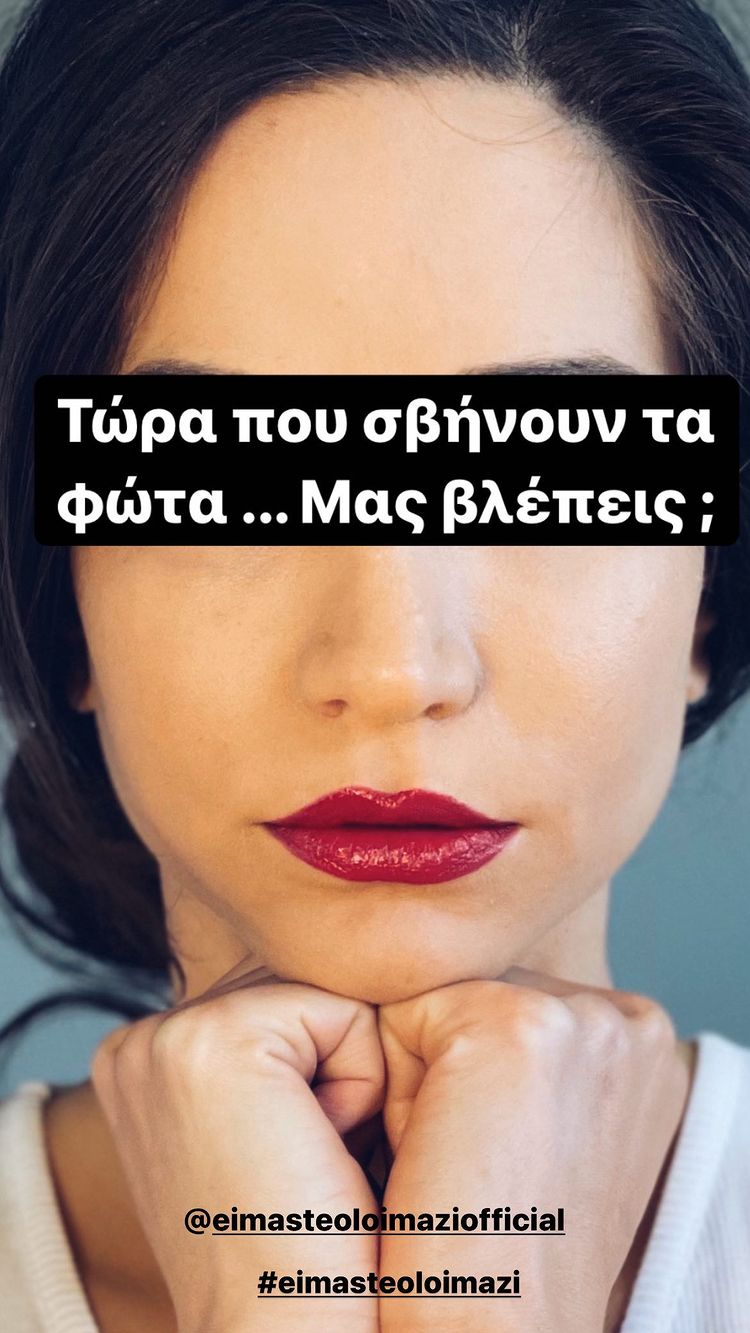Έτσι δημοσίευσαν φωτογραφίες τους, με μια φάσα που κρύβει τα μάτια τους, και γράφει τη φράση: “Τώρα που σβήνουν τα φώτα… Μας βλέπεις”; #είμαστε όλοι μαζί