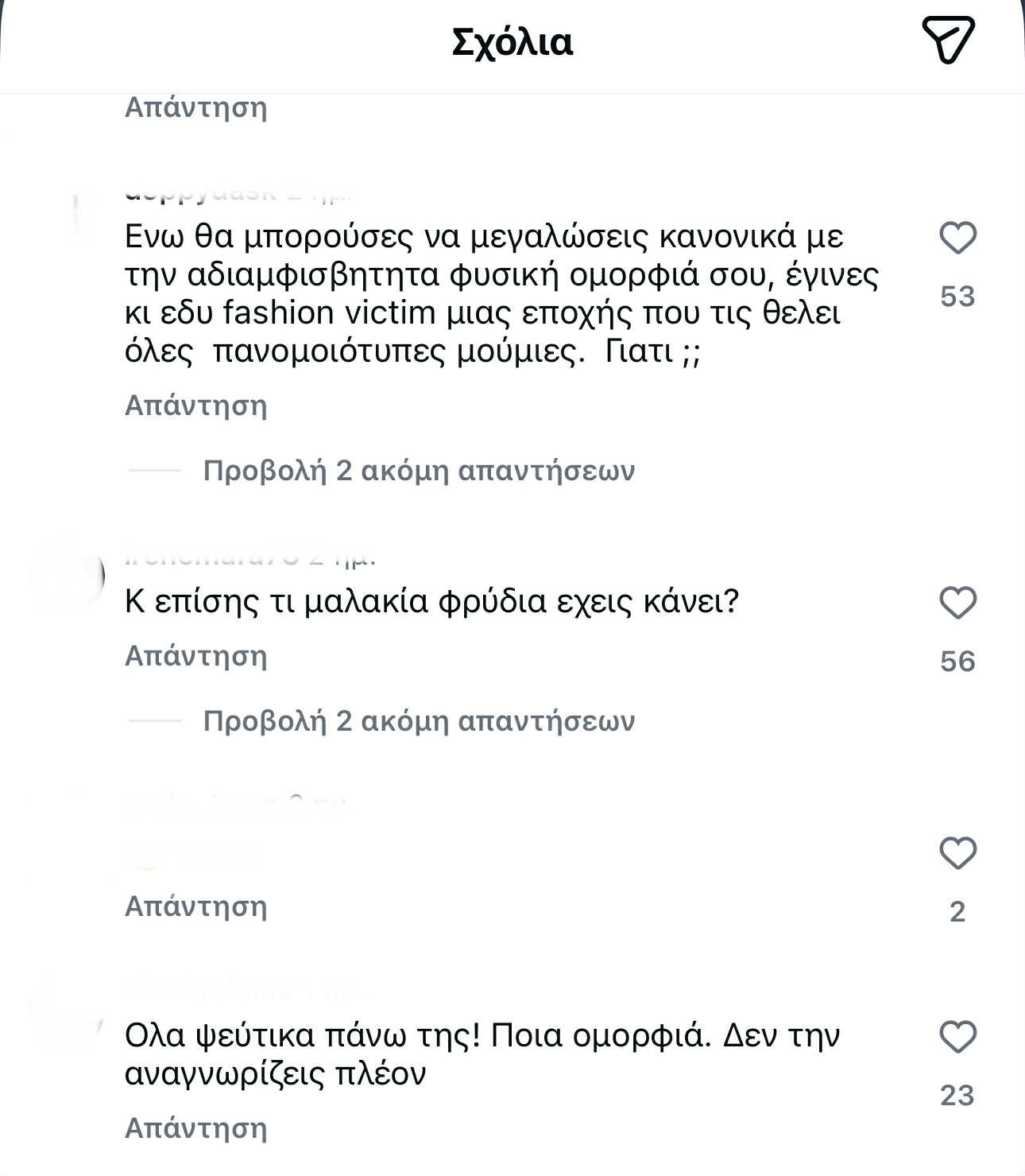 Δες παρακάτω μερικά από τα σχόλια που έγραψαν στο instagram για την Αγγελική Ηλιάδη: