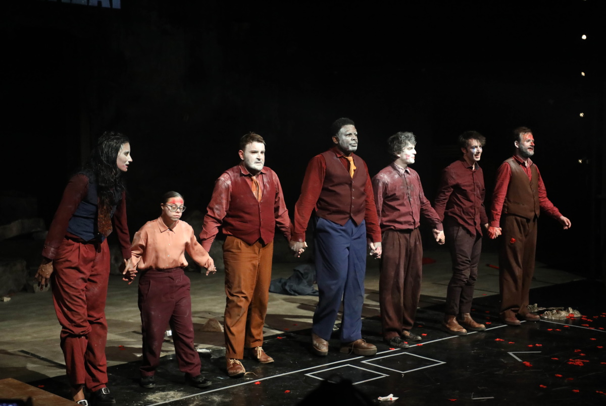Μιχάλης Αφολαγιάν, Δημήτρης Καπουράνης, Γιάννης Κόραβος, Λωξάνδρα Λούκας, Aurora Marion, Κωνσταντίνος Μαυρόπουλος και Γιώργης Παρταλίδης ανεβαίνουν στη σκηνή και αφηγούνται ξανά και ξανά την ιστορία ενός ανθρώπου που προσπαθεί να υπάρξει μέσα σε έναν κόσμο που καταρρέει. Ο Άμλετ γίνεται πεδίο έρευνας, ένα πεδίο μάχης∙ μια ανοιχτή αναμέτρηση με τα φαντάσματά μας – τα προσωπικά, τα συλλογικά, τα ιστορικά.