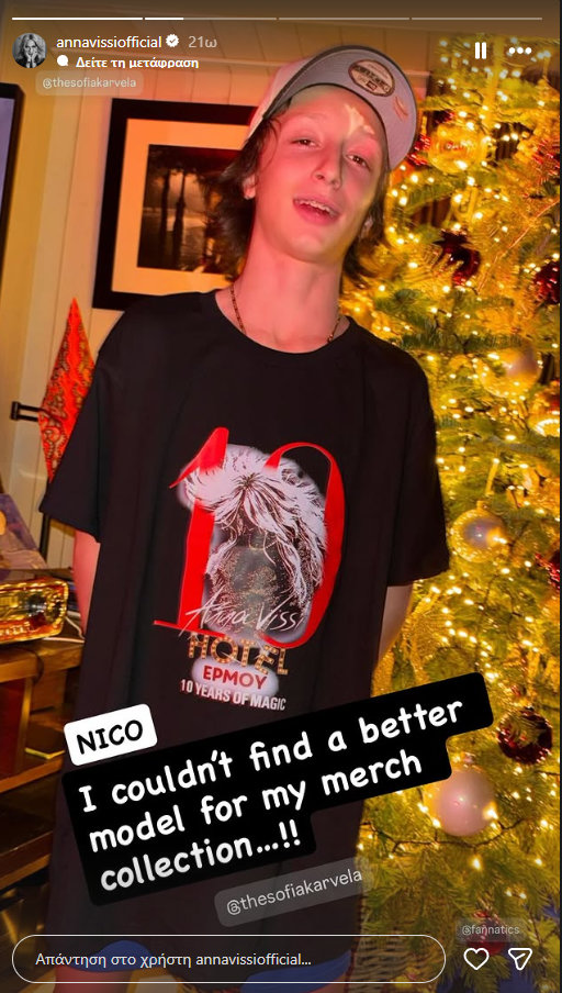 Τις πρώτες εικόνες μοιράστηκε η Άννα Βίσση μέσα από τον λογαριασμό της στο instagram. Στη μία ποζάρει η ίδια από την πολυθρόνα, ενώ στην άλλη βλέπουμε τον εγγονό της να φορά το T-Shirt για τα 10 χρόνια των εμφανίσεών της σε γνωστό νυχτερινό κέντρο. Όπως σχολιάζει στην ανάρτησή της, δεν θα μπορούσε να βρει καλύτερο μοντέλο!