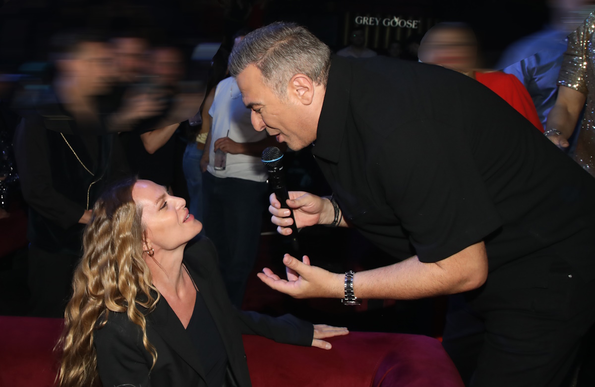 Η σχεδιάστρια μόδας απόλαυσε τον σύζυγό της επί σκηνής, παρακολουθώντας το πρόγραμμά του από τα πρώτα τραπέζια του νυχτερινού κέντρου. Καθ’ όλη τη διάρκεια της βραδιάς, δεν έλειψαν οι τρυφερές στιγμές ανάμεσα στο ζευγάρι, οι οποίες τράβηξαν τα βλέμματα των παρευρισκομένων.