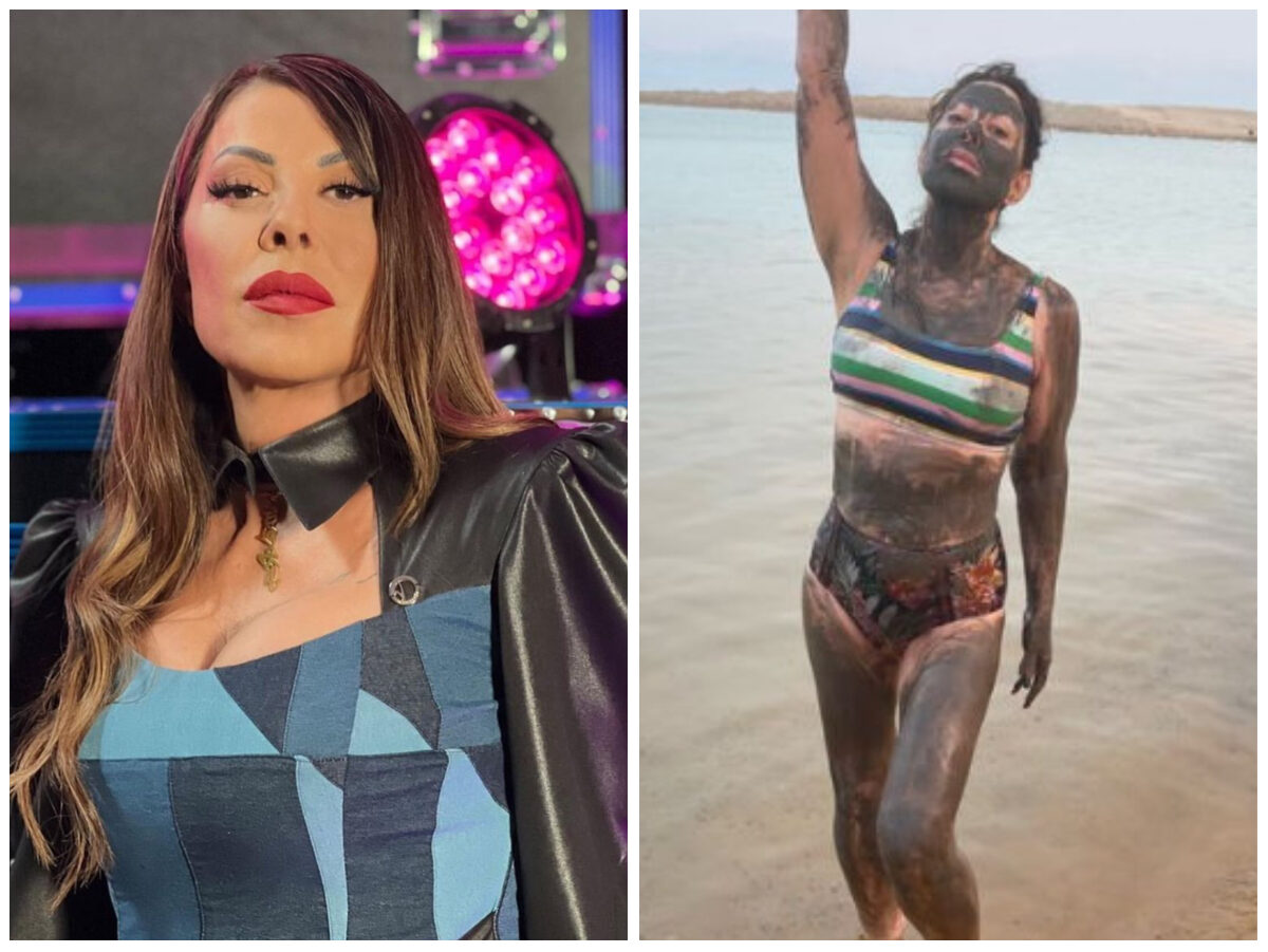 Η Άντζελα Δημητρίου δεν έμεινε για πολύ στην πισίνα, αφού σε λίγες ώρες βρέθηκε στην παραλία όπου και έκανε αργιλοθεραπεία με φόντο τη Νεκρά Θάλασσα.