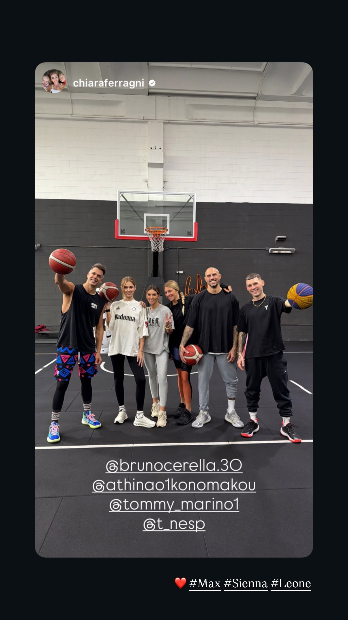 Αθηνά Οικονομάκου: Έπαιξε σε αγώνα μπάσκετ με την Κιάρα Φεράνι και τον σύντροφό της, Μπρούνο Τσερέλα – Φωτογραφία