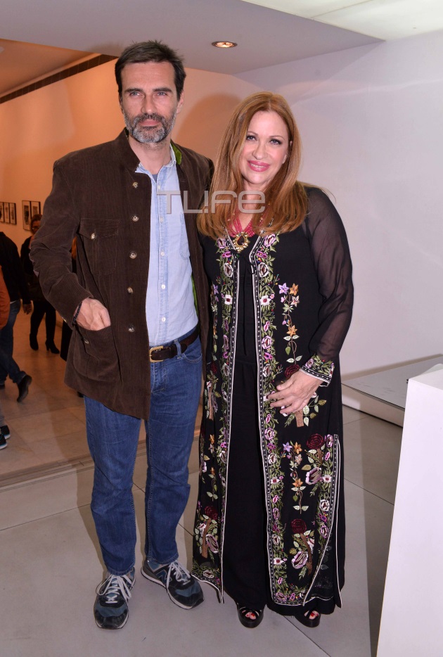 Από το πλευρό της Calliope στην έναρξη της έκθεσής της, δεν θα μπορούσε να λείπει ο σύζυγός της Χρήστος Καρβούνης.