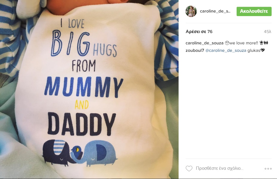 Μανούλα για δεύτερη φορά έγινε πριν 40 μέρες η διάσημη Βραζιλιάνα σχεδιάστρια Caroline De Souza που λατρεύουν οι Ελληνίδες. Το κορίτσι, που εδώ και τέσσερα χρόνια είναι ζευγάρι και αρραβωνιασμένη με τον γνωστό επιχειρηματία Βασίλη Χήτο του νερού “Ζαγόρι” έφερε στον κόσμο (στις 7 Απρίλη) ένα πανέμορφο αγοράκι και είναι ξετρελαμένη μαζί του