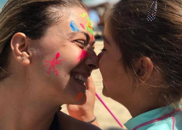 Έτσι, όλοι μαζί βρέθηκαν από νωρίς στη παραλία και ξεκίνησαν τα παιχνίδια, με την μικρή Έλενα να αναλαμβάνει χρέη… ζωγράφου. Το κοριτσάκι της Δέσποινας φαίνεται πως έχει μεγάλο ταλέντο στις τέχνες και έτσι οι γονείς της, την άφησαν να τους κάνει face painting.
