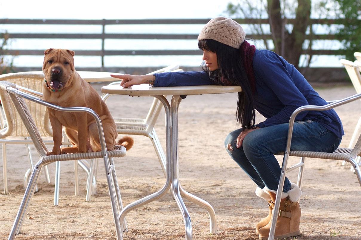 Τρελαίνονται και οι δύο για τους μεγάλους περιπάτους και όπου και αν πάνε η σκυλίτσα γίνεται το επίκεντρο! Παρόλα αυτά είναι πολύ ήσυχο σκυλί και ακόμα και όταν την έχει μαζί της στις πρόβες ή κοιμάται ή κάθεται δίπλα στην Ελένη.