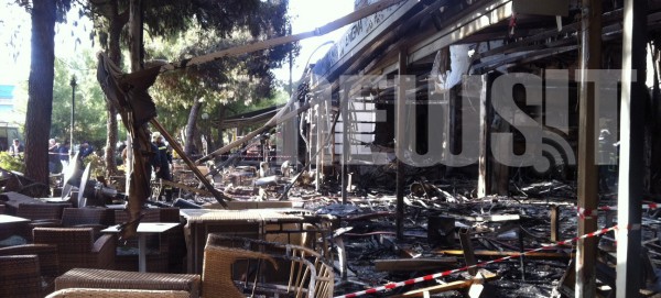Από την έκρηξη καταστράφηκε ολοσχερώς η καφετέρια αλλά και τα πολλά μαγαζιά που βρίσκονται κοντά. Το φως της ημέρας αποκάλυψε ότι συνολικά 15 μαγαζιά έχουν υποστεί σοβαρές υλικές ζημιές, ενώ σε σπίτι που βρίσκεται κοντά, έσπασαν τα παράθυρα.