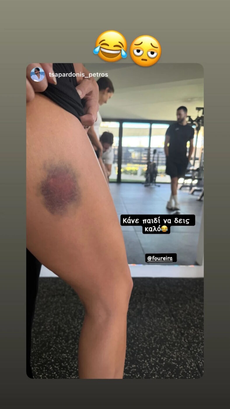 Πριν από λίγες ώρες, η Ελένη Φουρέιρα μοιράστηκε με τους διαδικτυακούς της φίλους στο Instagram ένα στιγμιότυπο από την καθημερινότητά της με τον Ερμή, αποκαλύπτοντας ένα ατυχές περιστατικό. Συγκεκριμένα, δημοσίευσε ένα story στο οποίο φαίνεται μια μεγάλη μελανιά στο πόδι της, την οποία απέκτησε την ώρα που έπαιζε με τον γιο της.