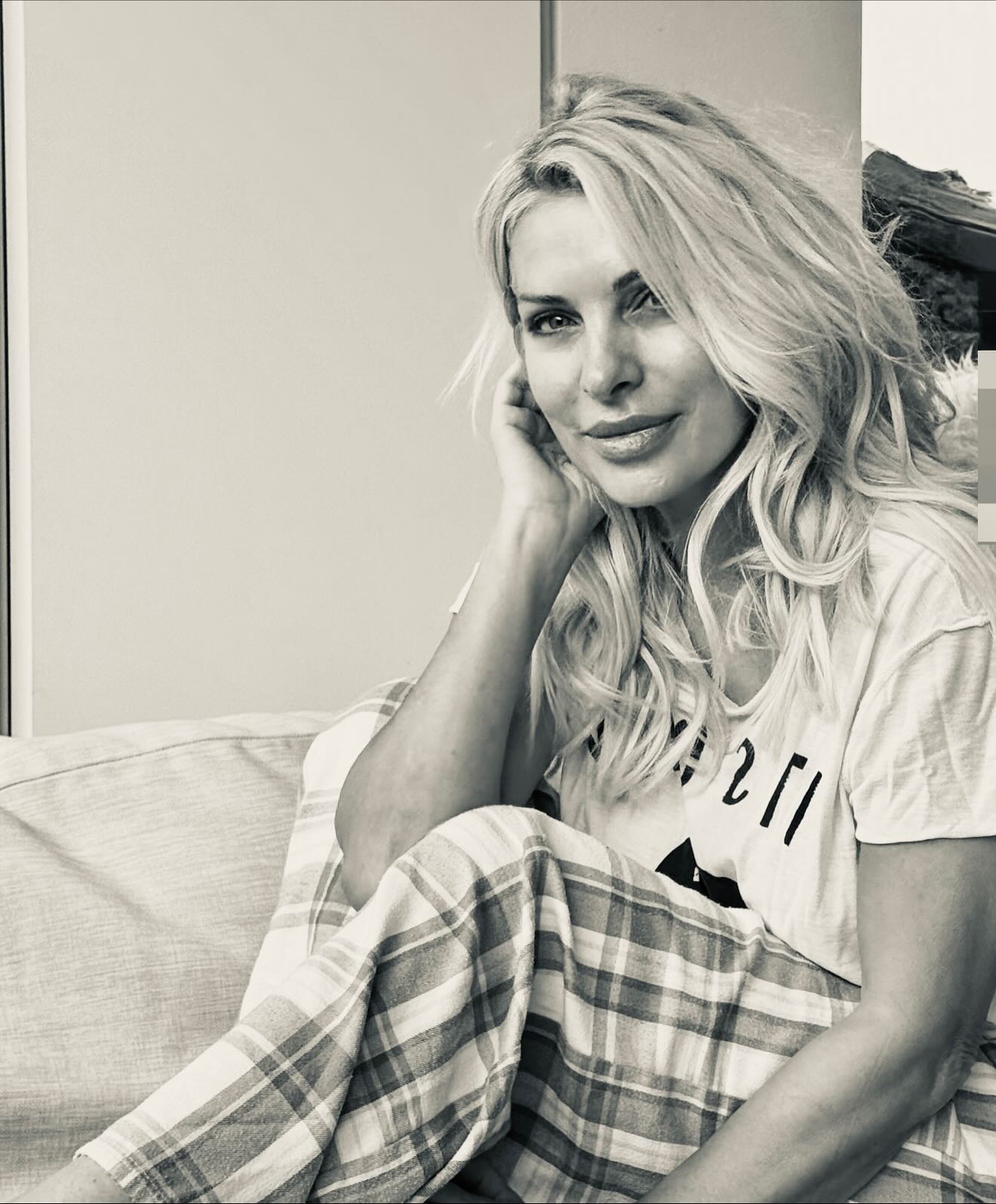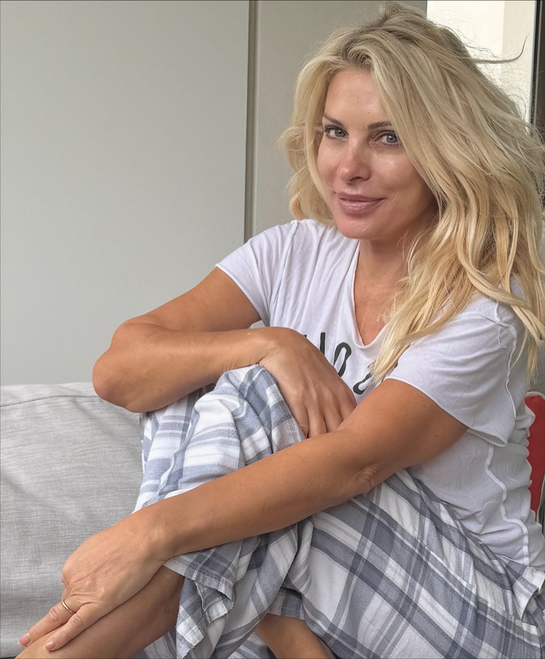 Ελένη Μενεγάκη: Ποζάρει με πιτζάμες και χωρίς μακιγιάζ στο σαλόνι του σπιτιού της – Φωτογραφίες