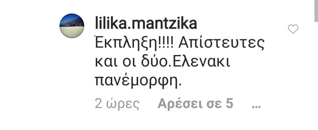 Η Λιλίκα Παντζόπούλου έγραψε: “Έκπληξη! Απίστευτες και οι δυο! Ελενάκι πανέμορφη”!