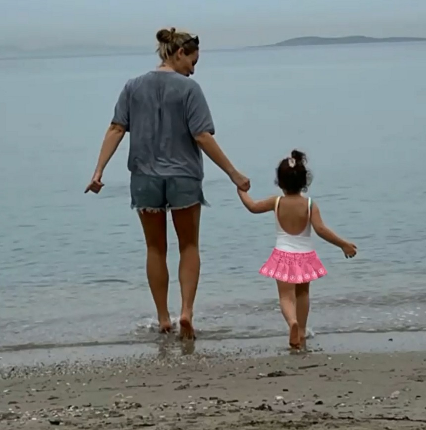 Από τη πλευρό της δεν έλειπε, βέβαια, και η τρίχρονη κόρη της Αλεξάνδρα, η οποία μπορεί να κρύωσε, όμως φάνηκε θαρραλέα και μπήκε στη θάλασσα. Η Ελεονώρα Μελέτη μοιράστηκε με τους διαδικτυακούς φίλους της στο Instagram μερικά στιγμιότυπα από την εξόρμησή τους και ευχήθηκε “καλό μήνα”.
