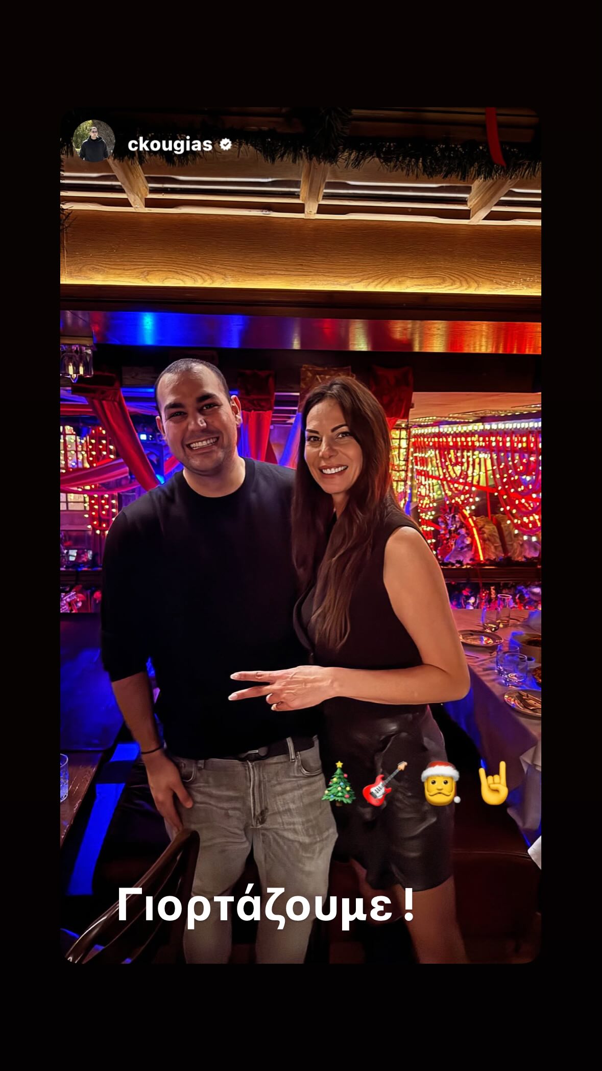Το πρώην μοντέλο πέρασε τη βραδιά της Παραμονής Χριστουγέννων μαζί με τα δυο της παιδιά, Χρήστο και Μάιρα Κούγια, στο νυχτερινό κέντρο που εμφανίζεται ο Θοδωρής Φέρρης. Η ίδια μοιράστηκε στιγμές από τη βραδιά μέσα από βίντεο και φωτογραφίες που ανέβασε στον προσωπικό της λογαριασμό στο Instagram, με την οικογένεια να τραγουδά και να χορεύει, στέλνοντας ένα μήνυμα ενότητας.