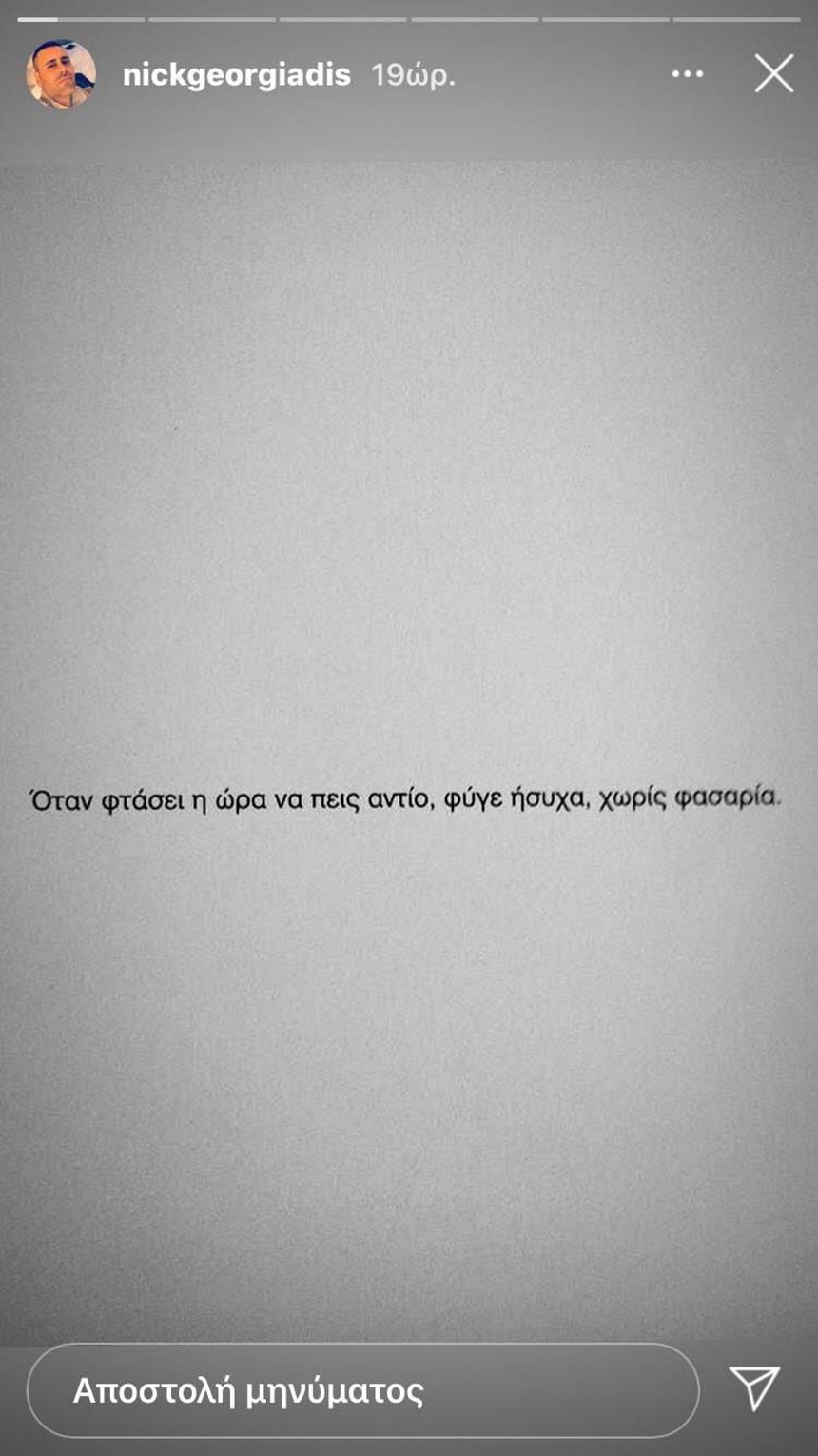 Όπως έγινε γνωστό πριν από λίγο, ο Νίκος Γεωργιάδης αποχώρησε από την εκπομπή.