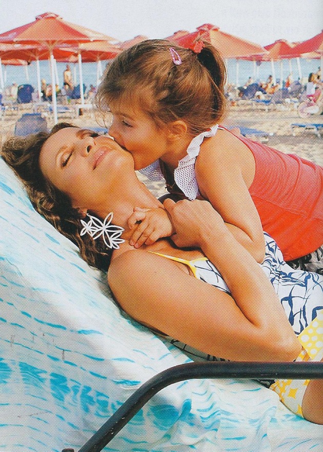 Όσον αφορά τη σχέση της με την κόρη της, η ίδια είπε ότι δεν είναι καθόλου αυστηρή μαμά: “Δυστυχώς δεν είμαι καθόλου αυστηρή και φοβάμαι ότι την έχω κακομάθει. Βλέπω καμιά φορά αυτή την αγγλική σειρά με τις νταντάδες και προσπαθώ να εφαρμόσω κι εγώ κάποια πράγματα στην Ερσίνη, αλλά δυστυχώς δεν πιάνει τίποτα. Προσπάθησα όταν χρειάστηκε να την βάλω τιμωρία, αλλά επειδή δεν μπορούσα να το κρατήσω, το σταμάτησα.”