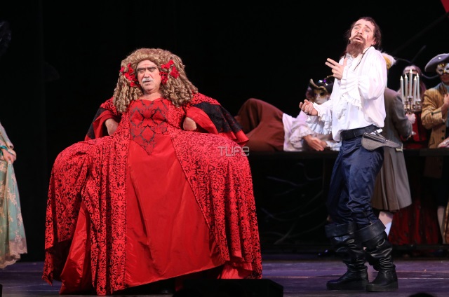 Στους δύο πρωταγωνιστικούς ρόλους του Δον Κιχώτη και του Σάντσο Πάντσα θα απολαύσουμε τον Γιάννη Στάνκογλου και τον Δημήτρη Πιατά, δύο από τους σημαντικότερους ηθοποιούς στο ελληνικό θέατρο, ενώ σε ρόλο έκπληξη θα δούμε τη γνωστή τραγουδίστρια Σαβίνα Γιαννάτου. Μαζί τους 25 τραγουδιστές, ηθοποιοί και χορευτές σε μια ακόμη υψηλού επιπέδου παραγωγή του Μιχάλη Αδάμ.