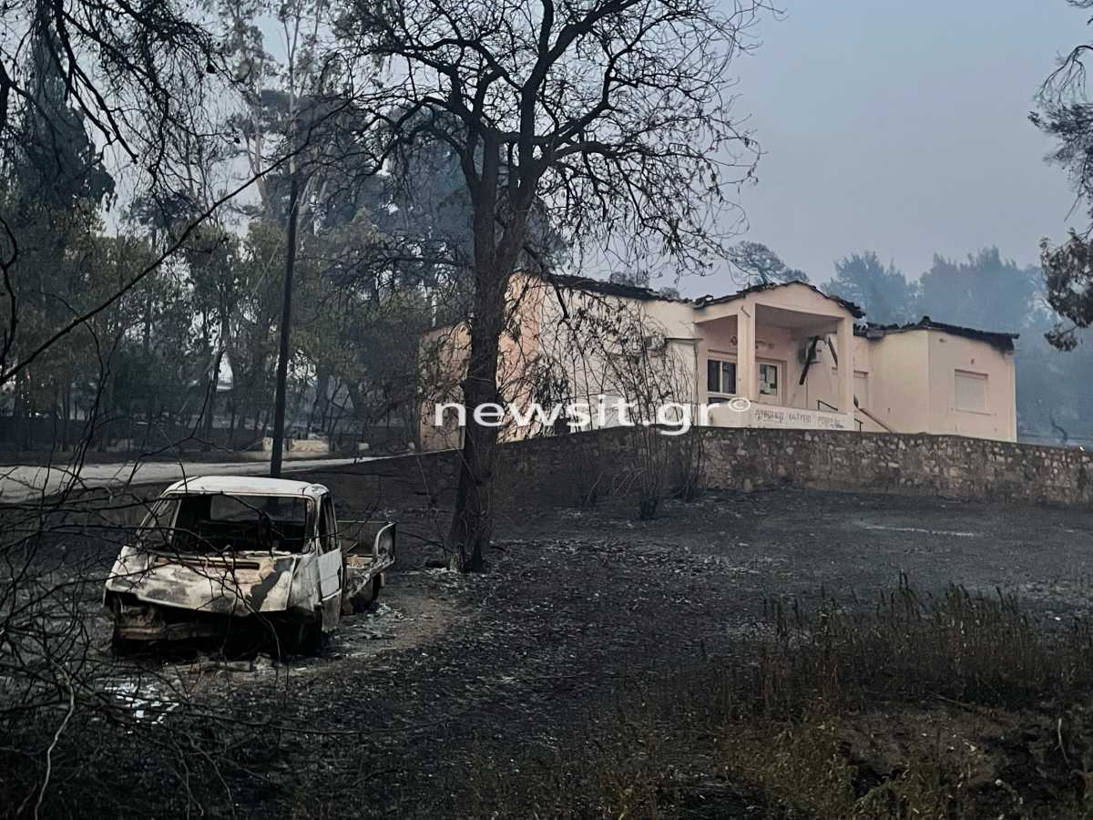 Τα σπίτια έχουν καεί. Ηλεκτρικό ρεύμα δεν υπάρχει πουθενά. Στον δρόμο δεν κυκλοφορεί κανείς, ενώ τα σπίτια που δεν έχουν καεί, είναι ανοιχτά χωρίς κανένας να βρίσκεται μέσα. Μονάχα στάχτη, σε μια περιοχή που αποτελούσε δημοφιλέστατο τουριστικό προορισμό και μέχρι πριν λίγες ώρες έσφυζε από ζωή, καθώς βρισκόμαστε στην «καρδιά» του καλοκαιριού…