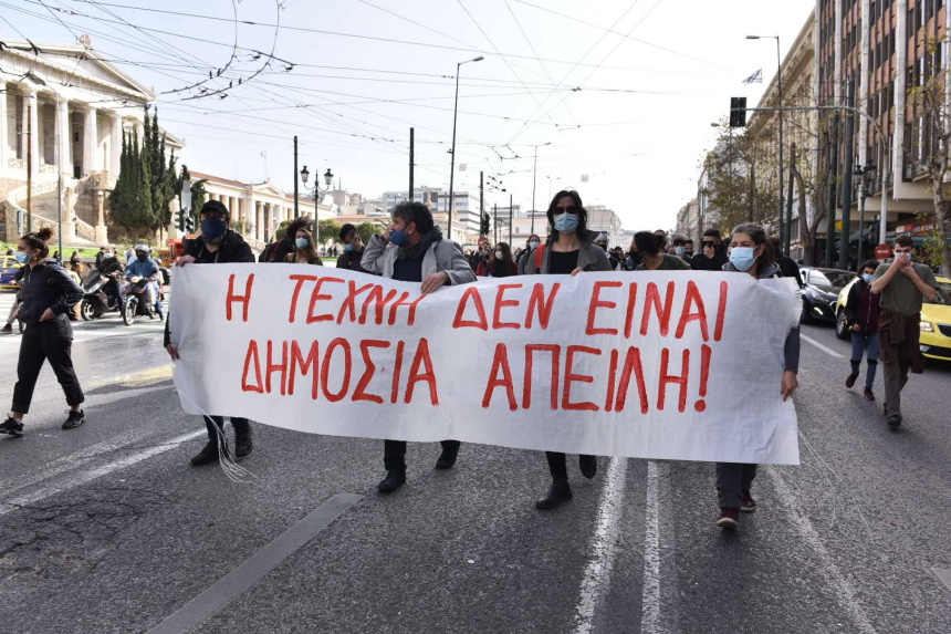Δες παρακάτω φωτογραφικό υλικό από τη σημερινή πορεία των Ελλήνων καλλιτεχνών στο κέντρο της Αθήνας: