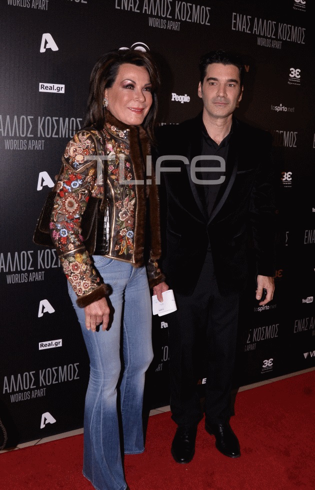Για την εμφάνισή της προτίμησε casual chic look, με τζιν παντελόνι και φλοράλ τζάκετ με γούνινες λεπτομέρειες. Εδώ η θερμή αγκαλιά με τον δημιουργό της ταινίας.