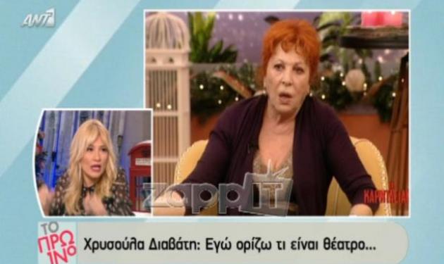 Σε σήριαλ εξελίσσεται η κόντρα της Χρυσούλας Διαβάτη. Αυτήν τη φορά η γνωστή ηθοποιός έκανε έξαλλη την Φαίη Σκορδά.