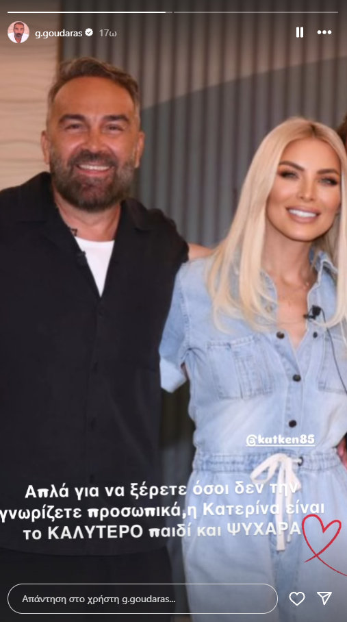 «Απλά για να ξέρετε, όσοι δεν την γνωρίζετε προσωπικά, η Κατερίνα είναι το καλύτερο παιδί και ψυχάρα», έγραψε ο Γρηγόρης Γκουντάρας.