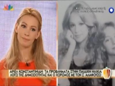 Η Άριελ Κωσταντινίδη ξεκίνησε την καριέρα της από πολύ μικρή ηλικία και μάλιστα στο πλευρό της αξέχαστης Αλίκης Βουγιουκλάκη. Βέβαια, όπως αποκαλύπτει η ίδια στην Τατιάνα, η αναγνωρισιμότητα αυτή της δημιούργησε προβλήματα στην παιδική της ηλικία.