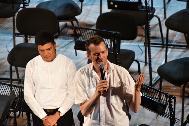 Η DiDonato μίλησε για ενότητα και είδαμε και τους μουσικούς της SEYO να “μιλούν” για αυτό μέσα από την συμβολική τους κίνηση να φορέσουν όλοι κατά τη διάρκεια της συναυλίας τα γαλάζια μπλουζάκια του El Sistema Greece.