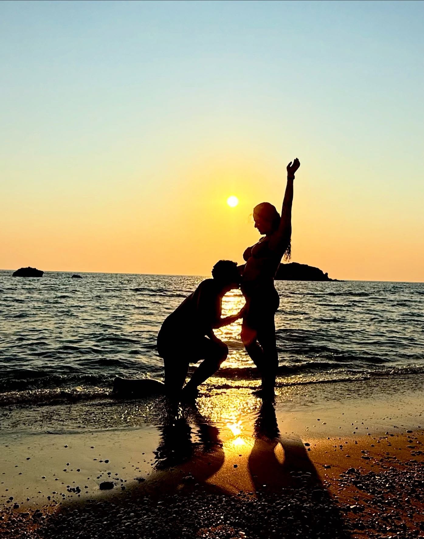 Η Ευλαμπία Ρέβη ανακοίνωσε την εγκυμοσύνη της στα social media μέσα από μια σειρά από τρυφερές φωτογραφίες στο ηλιοβασίλεμα με τον σύζυγό της, Σωτήρη Σκουλούδη.