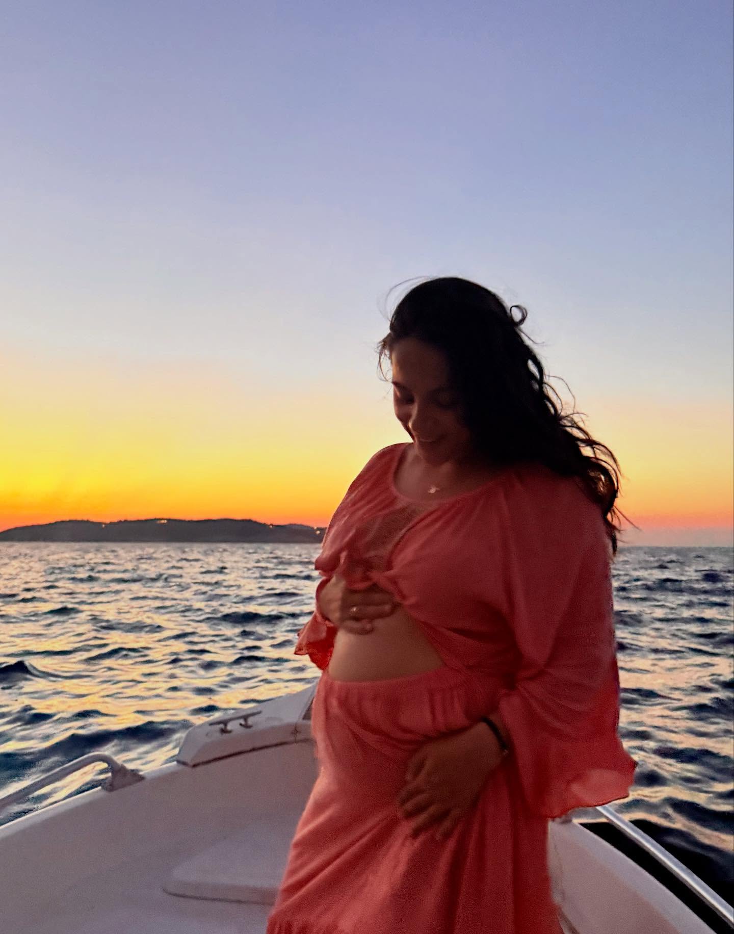 Μικρό μας θαύμα, σε περιμένουμε με ανυπομονησία! Δεν θα μπορούσα να ευχηθώ ομορφότερο δώρο για τη ζωή μου, για τη γιορτή μου… Ευχαριστώ», έγραψε η Ευλαμπία Ρέβη γνωστοποιώντας την ευχάριστη είδηση της εγκυμοσύνης της.