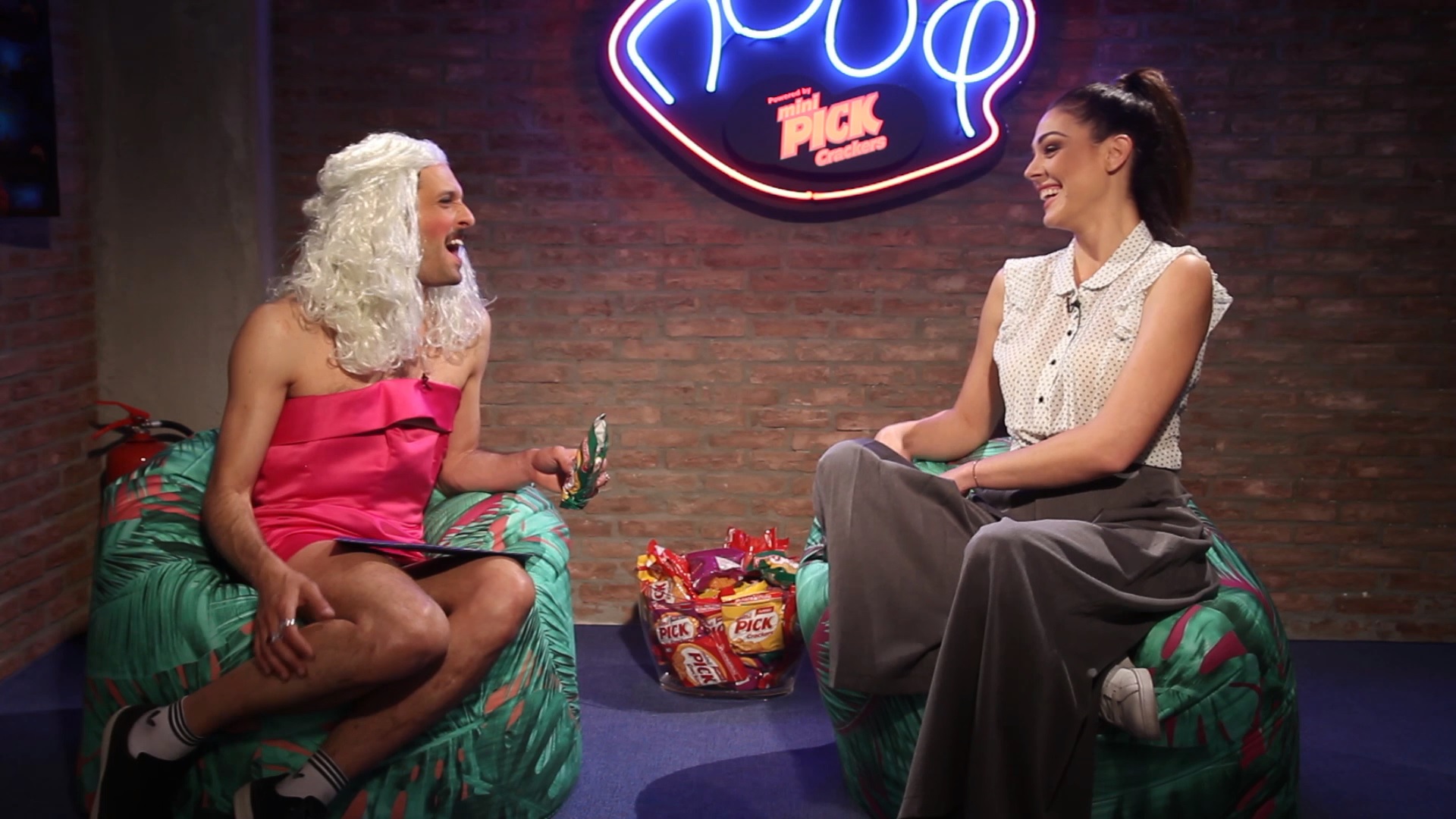 Η Ιωάννα Τριανταφυλλίδου είναι η πρώτη και τελευταία καλεσμένη στο special «πρωϊνάδικο» του ΠΟΥΦ με παρουσιαστή τον Δημήτρη Μοθωναίο (με ξανθιά περούκα και φούξια στράπλες φόρεμα)…