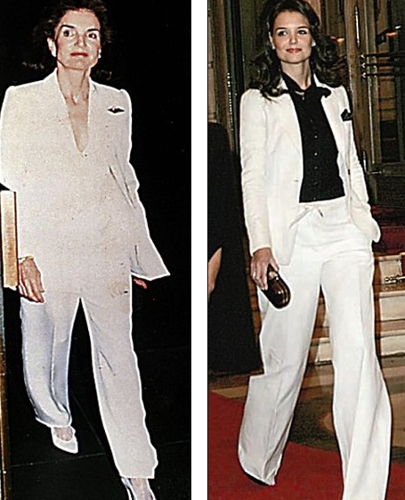 Ο λόγος για την Katie Holmes η οποία αντιγράφει συστηματικά το στυλ της μεγάλης κυρίας Jackie Kennedy. Aξίζει να σημειωθεί πως το τελευταίο διάστημα η ηθοποιός κάνει τα γυρίσματα μιας μίνι σειράς που ονομάζεται The Kennedys και φυσικά τον ρόλο της Jackie υποδύεται η Katie. Τυχαίο; Δεν νομίζω! Φαίνεται ότι έχει αφοσιωθεί τόσο πολύ στον ρόλο της, που τον υποδύεται… και off camera.