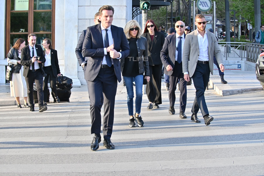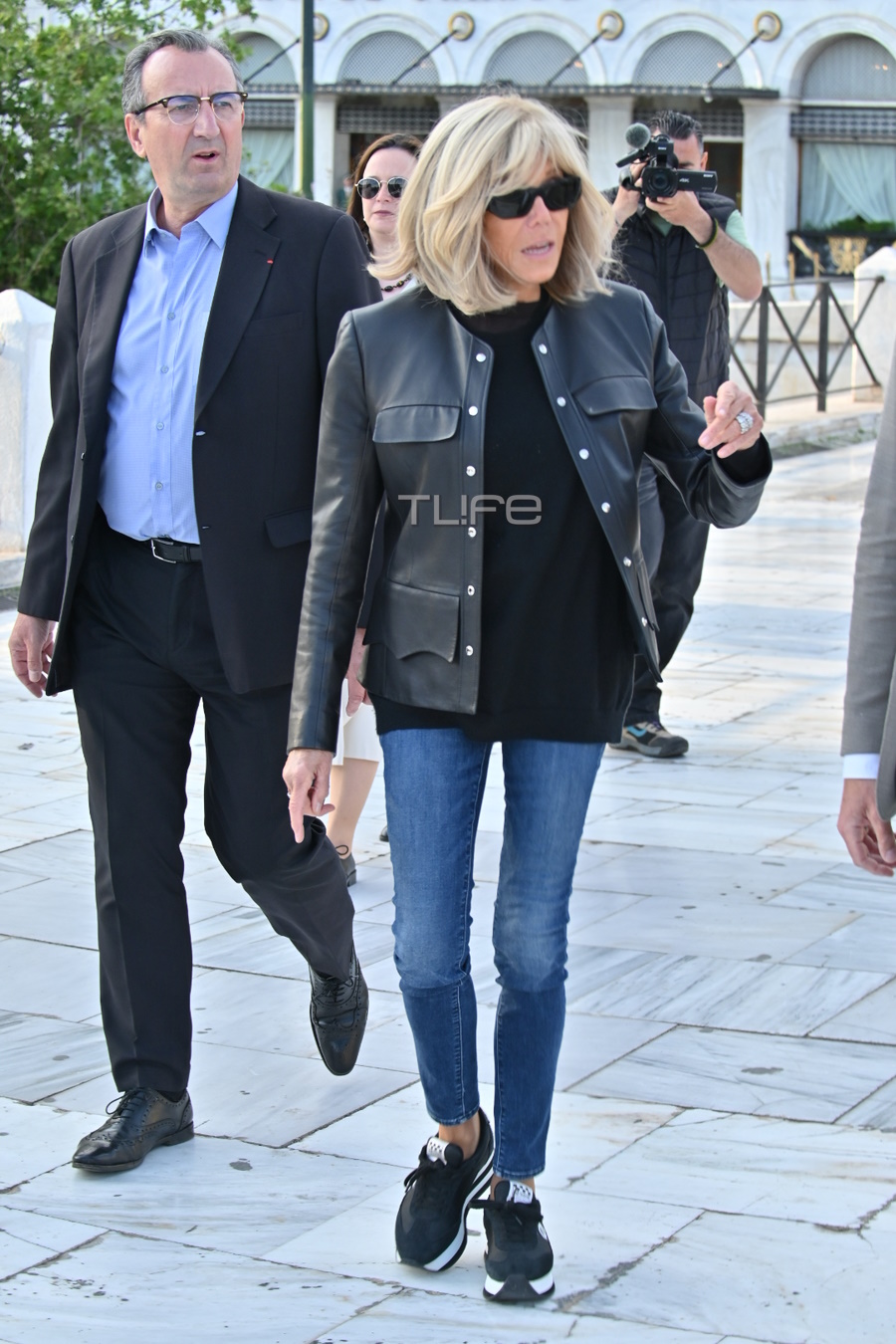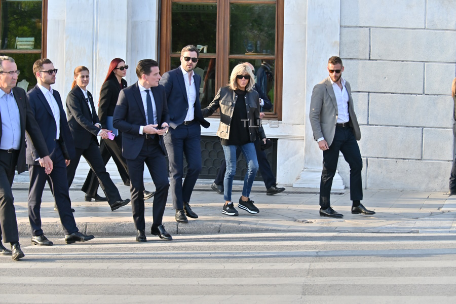 Το TLIFE εξασφάλισε φωτογραφίες με την Μπριζίτ Μακρόν στο Σύνταγμα. Με casual εμφάνιση μαύρα γυαλιά ηλίου. Η πρώτη κυρία της Γαλλίας διέσχισε τον κεντρικό δρόμο στην πλατεία Συντάγματος.