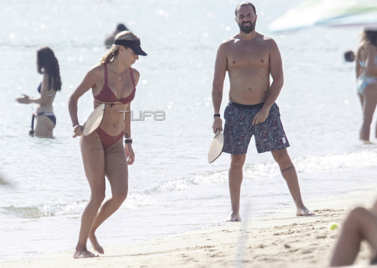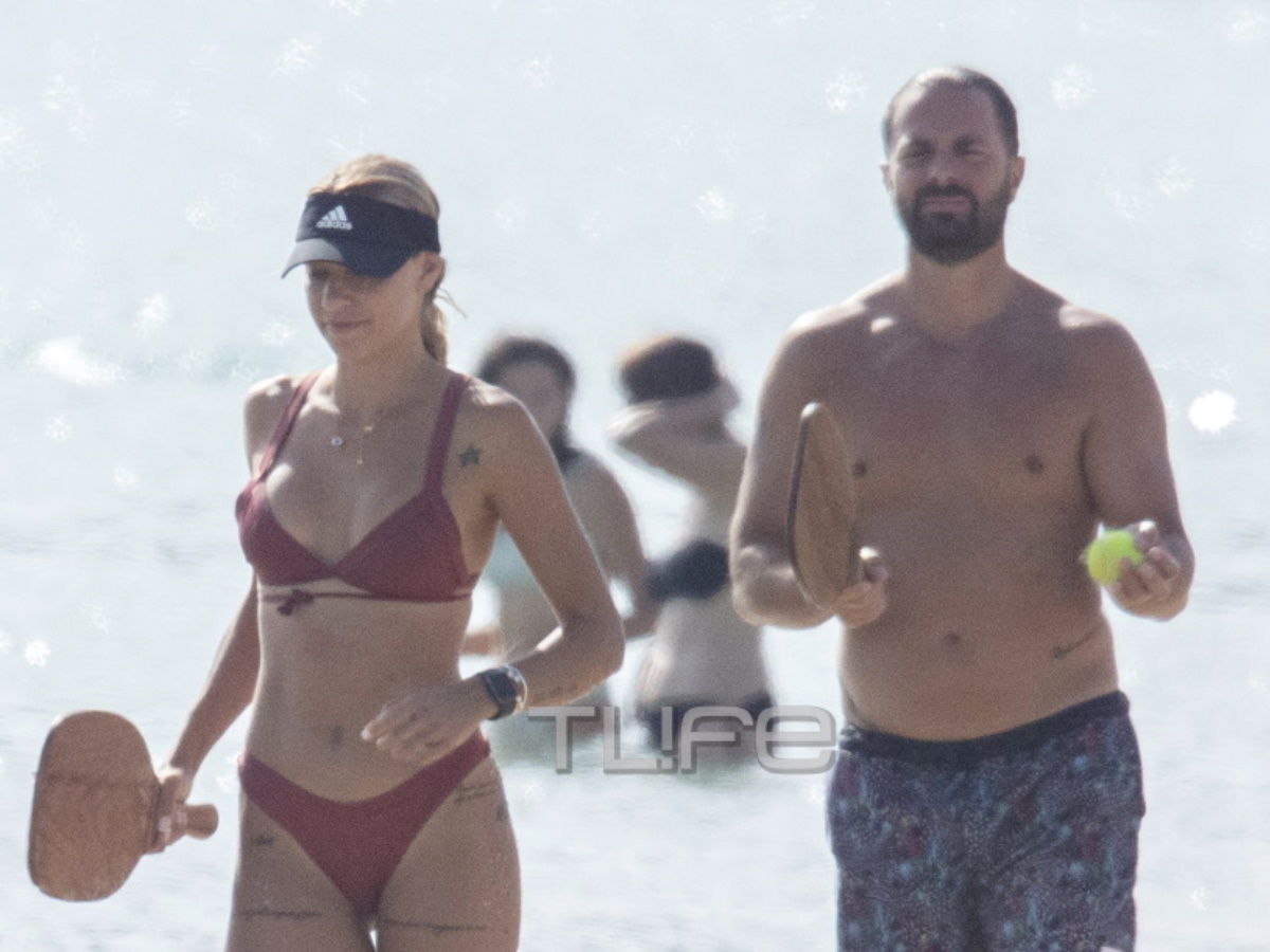 Σε μια παραλία του κυκλαδίτικου νησιού τους απαθανάτισε και ο φωτογραφικός φακός να παίζουν ρακέτες.