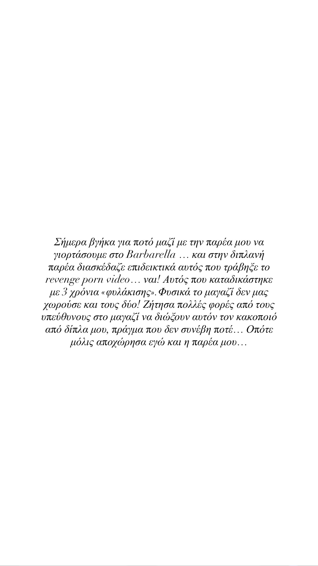 Έχω πάρει τόση υποστήριξη από όλες εσάς και σας ευχαριστώ. Και πιστεύω ότι για πρώτη φορά η ντροπή αλλάζει όντως πλευρά και αυτό το καταφέραμε μαζί. Οι πράξεις αυτές είναι κακουργηματικές. Δεν χωράνε καμία ανοχή…