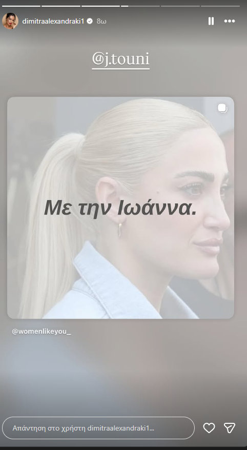 Αμέσως μετά την απόφαση του δικαστηρίου για την ενοχή των κατηγορουμένων τα social media γέμισαν με αναρτήσεις για την Ιωάννα Τούνη η οποία βγήκε κερδισμένη από την δικαστική περιπέτεια. Ανάμεσα τους και ο Δημήτρης Αλεξάνδρου ο οποίος αναδημοσίευσε την ανάρτηση «Με την Ιωάννα» βάζοντας κόκκινες καρδιές.