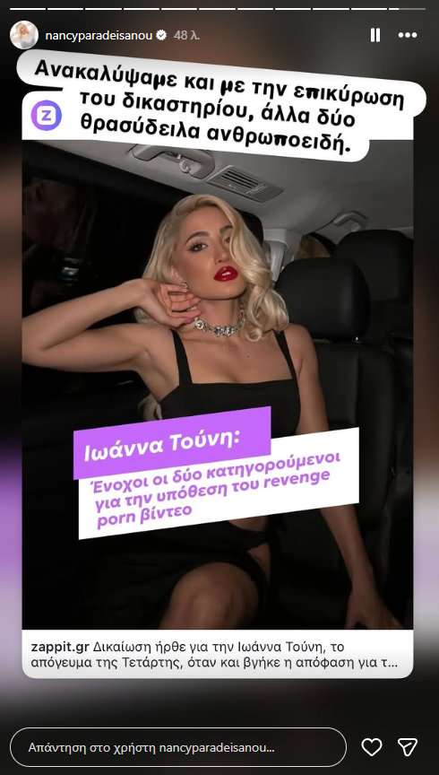 Αυλαία για την υπόθεση revenge porn με θύμα την Ιωάννα Τούνη. Χθες, Τετάρτη 1 Απριλίου το Τριμελές Εφετείο Κακουργημάτων Θεσσαλονίκης έκρινε ένοχους τους δύο κατηγορούμενους, σχεδόν εννέα χρόνια μετά το συμβάν.