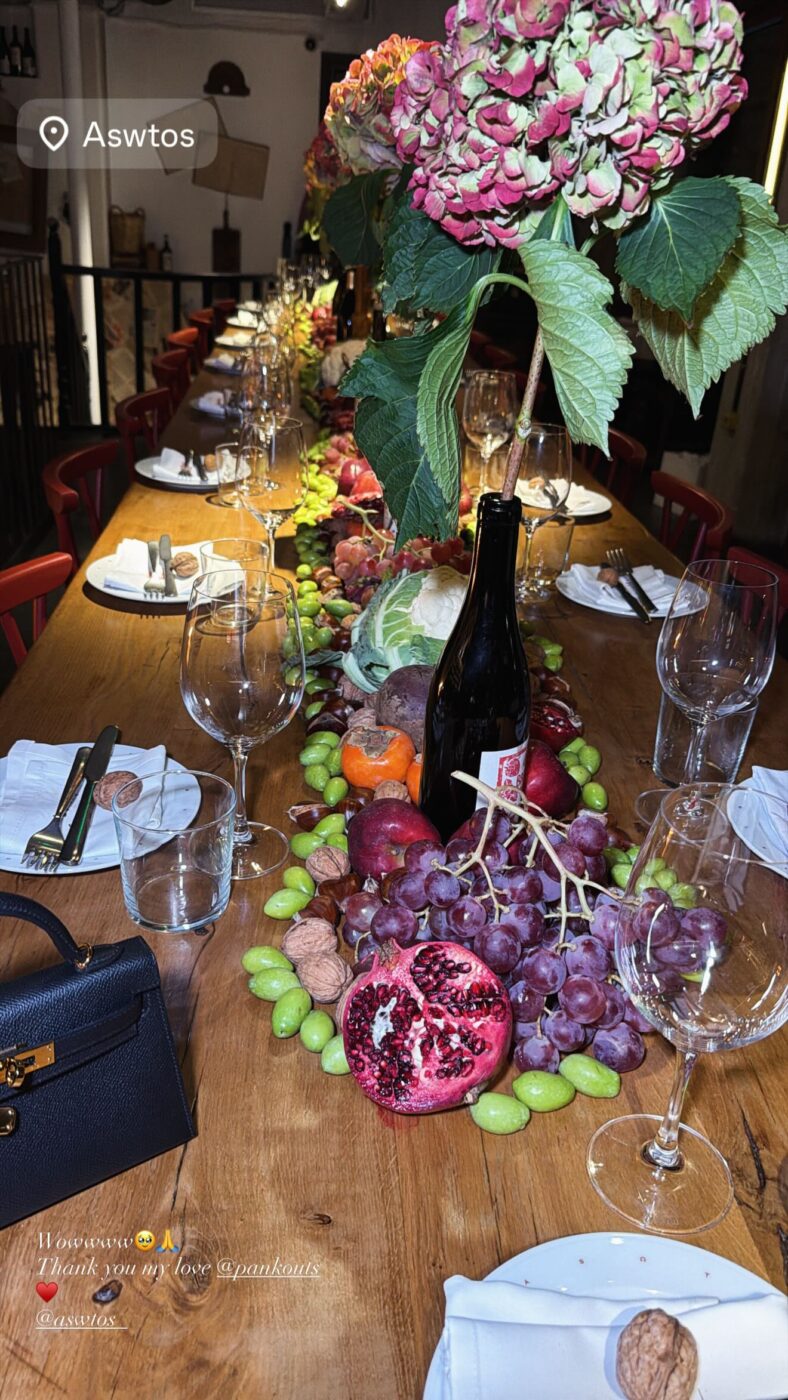 Το ίδιο βράδυ, η παρουσιάστρια του Alpha βρέθηκε για δείπνο στο εστιατόριο του συντρόφου της, Παναγιώτη Κουτσουμπή για να γιορτάσει μαζί με καλούς φίλους αυτή την ξεχωριστή ημέρα.