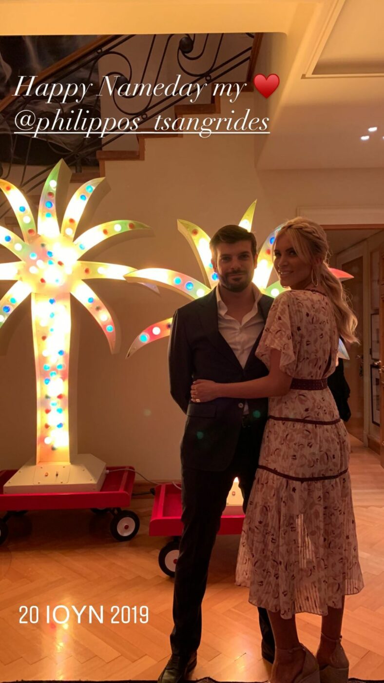 Σήμερα ο αγαπημένος της όμορφη παρουσιάστριας έχει τη γιορτή του και χθες αργά το βράδυ η Κατερίνα του ευχήθηκε με μια όμορφη φωτογραφία τους από βραδινή τους έξοδο. Το ερωτευμένο ζευγάρι γιόρτασε την έναρξη της ονομαστικής γιορτής του Φίλιππου τρώγοντας γλυκό που λόγω των μέτρων παρήγγειλαν από delivery!
